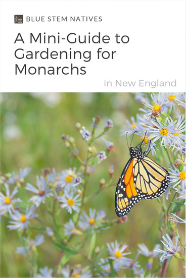 Monarch butterflies have officially returned to New England from their incredible journey from Mexico. We had a confirmed sighting at Blue Stem Natives yesterday! Luckily we have common milkweed (Asclepias syriaca) growing all around the back of the greenhouse and the Monarch butterfly laid egg after egg on these plants. Monarch butterflies know to lay their eggs on milkweeds* as it's the only genus of plant that their caterpillars can eat. See the egg if you zoom in on the photo. It's quite possible that if you bring home some milkweed in pots from Blue Stem this weekend you'll have some Monarch eggs on the leaves.
